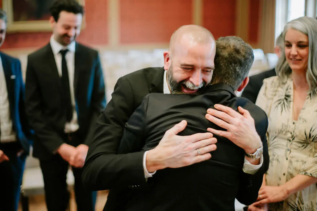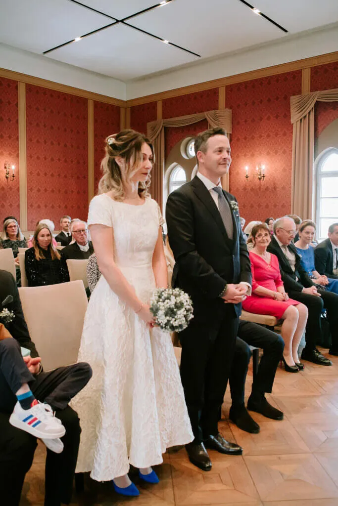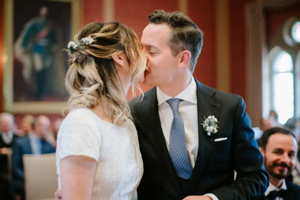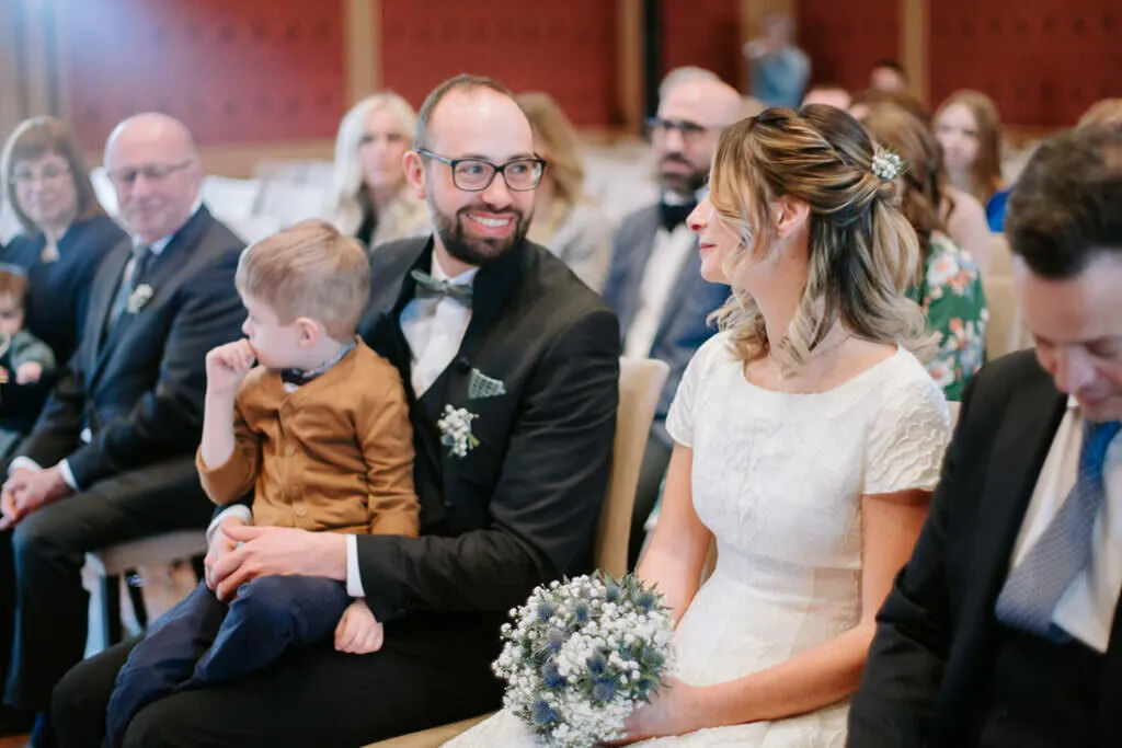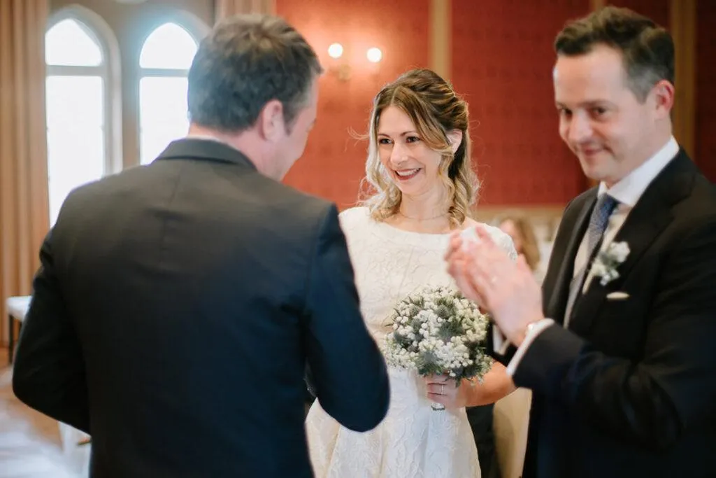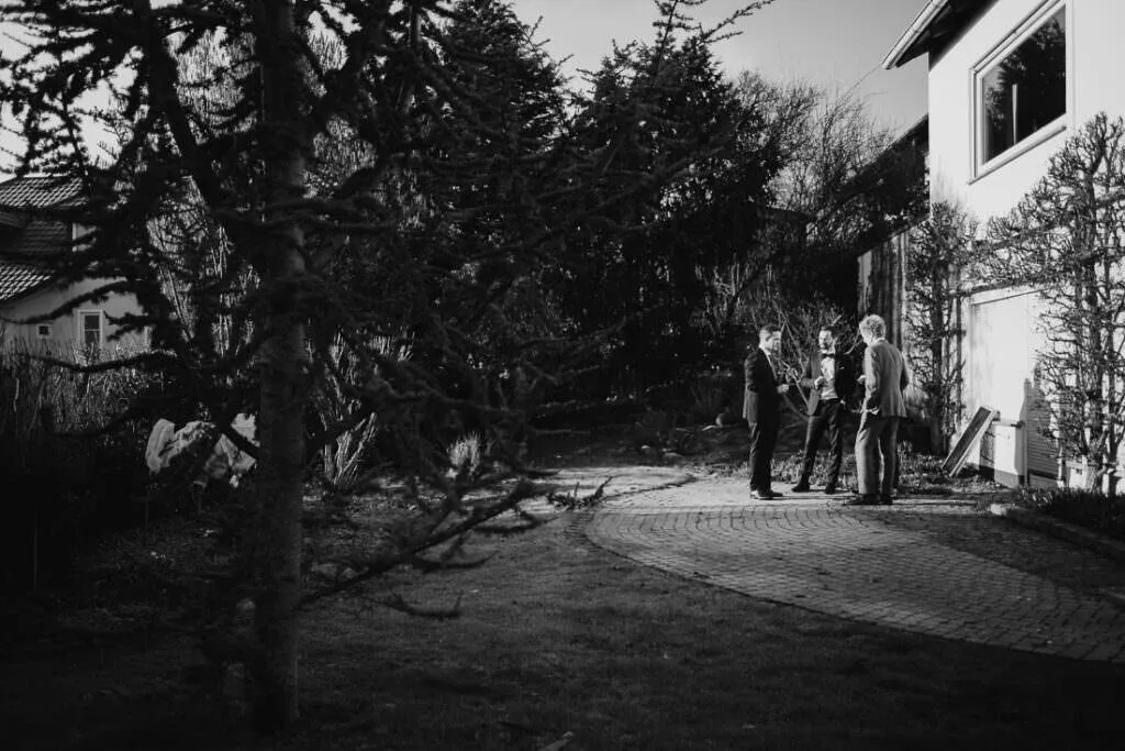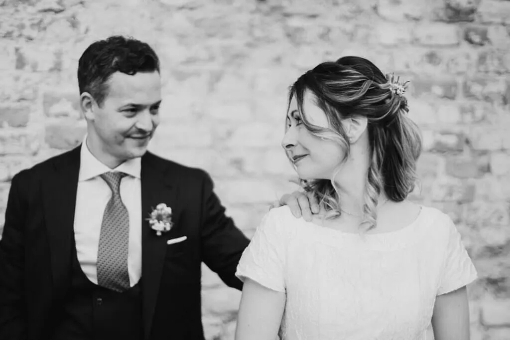 Es war ein besonderer und emotionaler Moment, als die Beiden sich zum ersten Mal sahen. Nur Vogelgezwitscher und eine wunderschöne Lichtstimmung im leeren Innenhof des Klosters, wow! Nach ein paar Bildern im Innenhof ging es ein paar Meter weiter zur nächsten Location, dem wunderschönen Prielhof und ein paar angrenzenden Weihern. Wir hatten schon viel Spaß hier beim Shooting und hätten noch lange weiterfotografieren können, aber natürlich warteten auf uns die vielen Freunde und Familienmitglieder zur standesamtlichen Trauung im Rathaus von Pfaffenhofen. Die Trauung wurde vom Bürgermeister sehr persönlich und schön gestaltet.