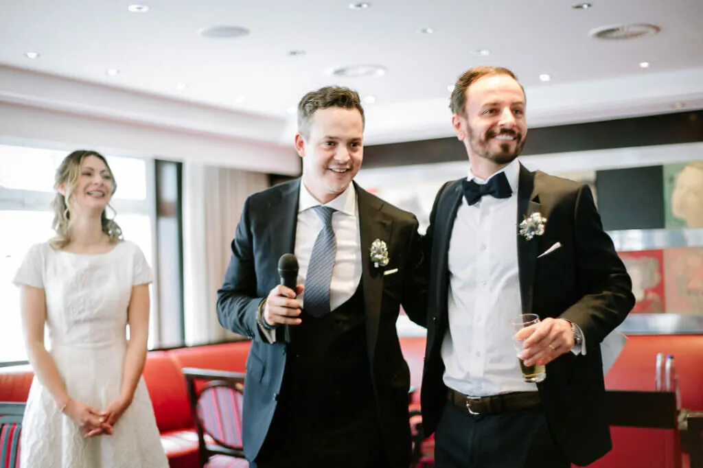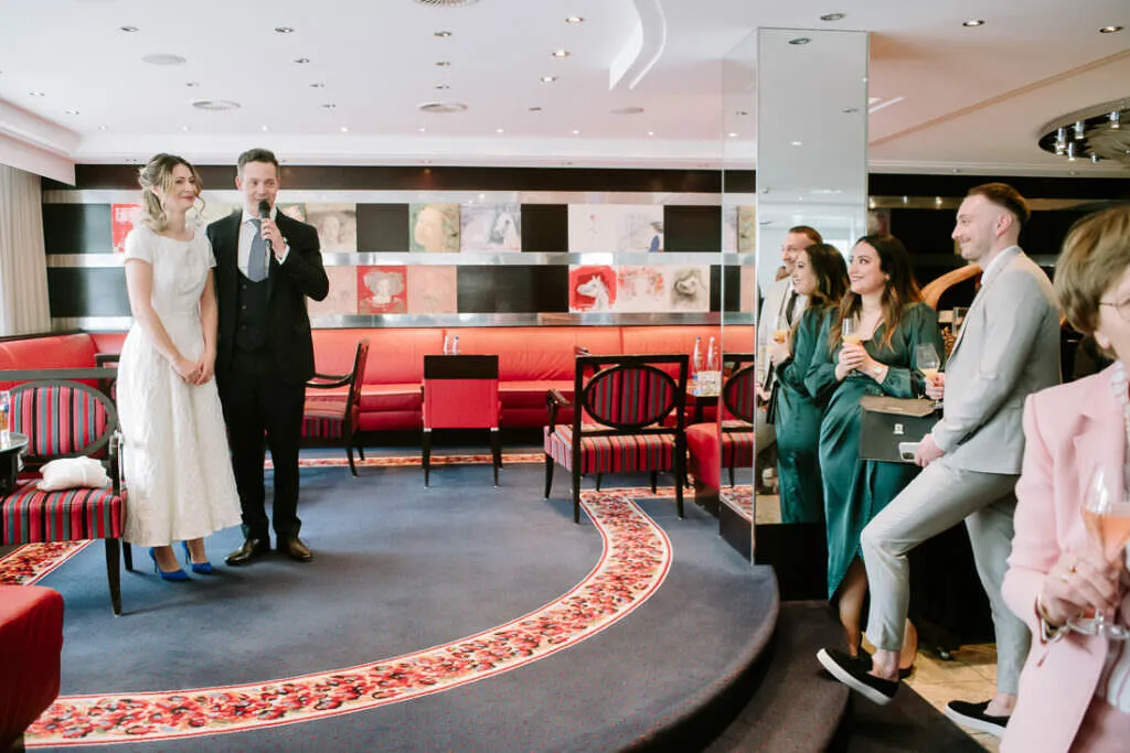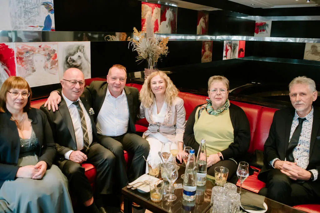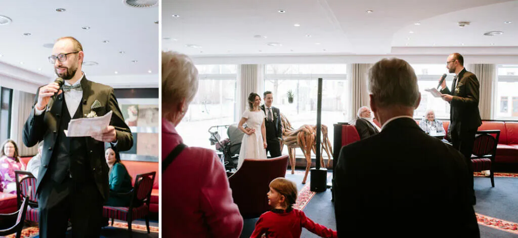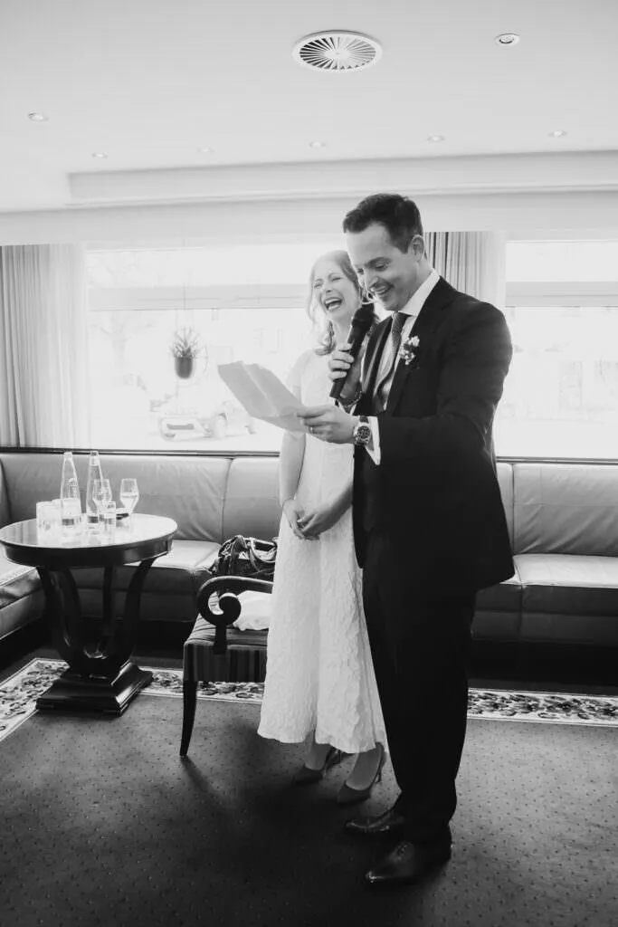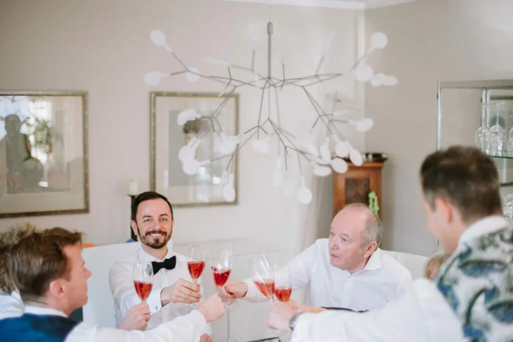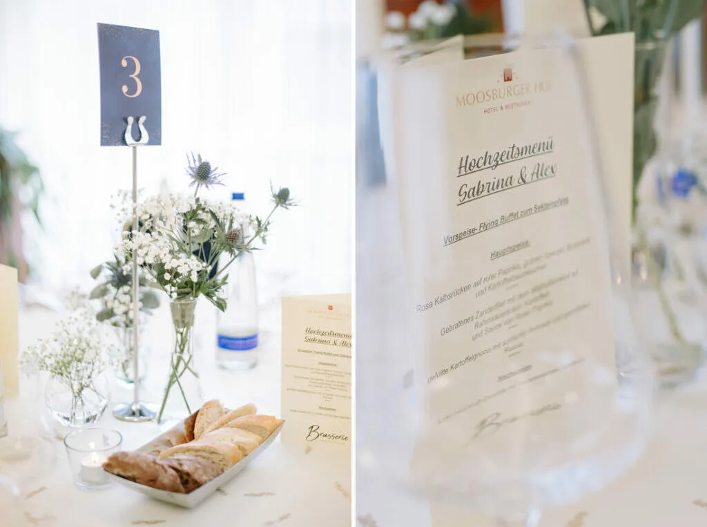 Als die Trauung fertig war, ging es zum Sektempfang und Mittagessen wieder in den Moosburger Hof.
