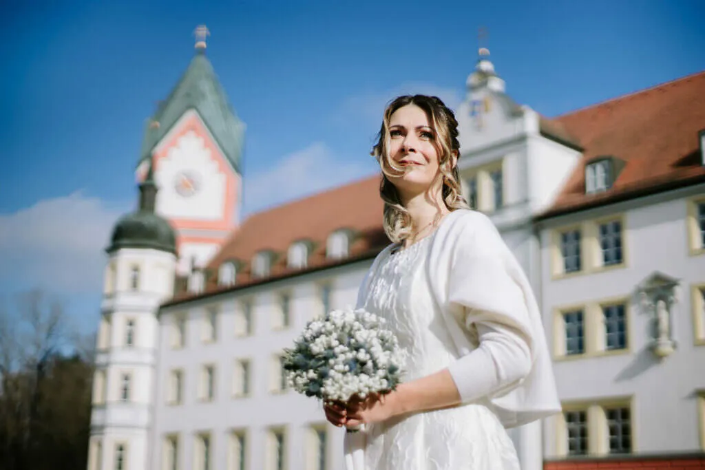 Anfang März konnte endlich die Hochzeitsfeier von Sabrina & Alexander starten! Zentrum der Vorbereitungen und Feierlichkeiten war der Moosburger Hof in Pfaffenhofen. Hier habe ich Sabrina früh morgens schon beim Getting Ready begleiten dürfen, bevor es dann weiter zu Alexander ging, wo erst einmal ein leckeres Weisswurst-Frühstück von seinen Eltern auf ihn und seine Freunde warteten. Gut gestärkt ging es dann los für Alexander, seine Sabrina zum ersten Mal im Innenhof des Klosters Scheyern zu sehen.