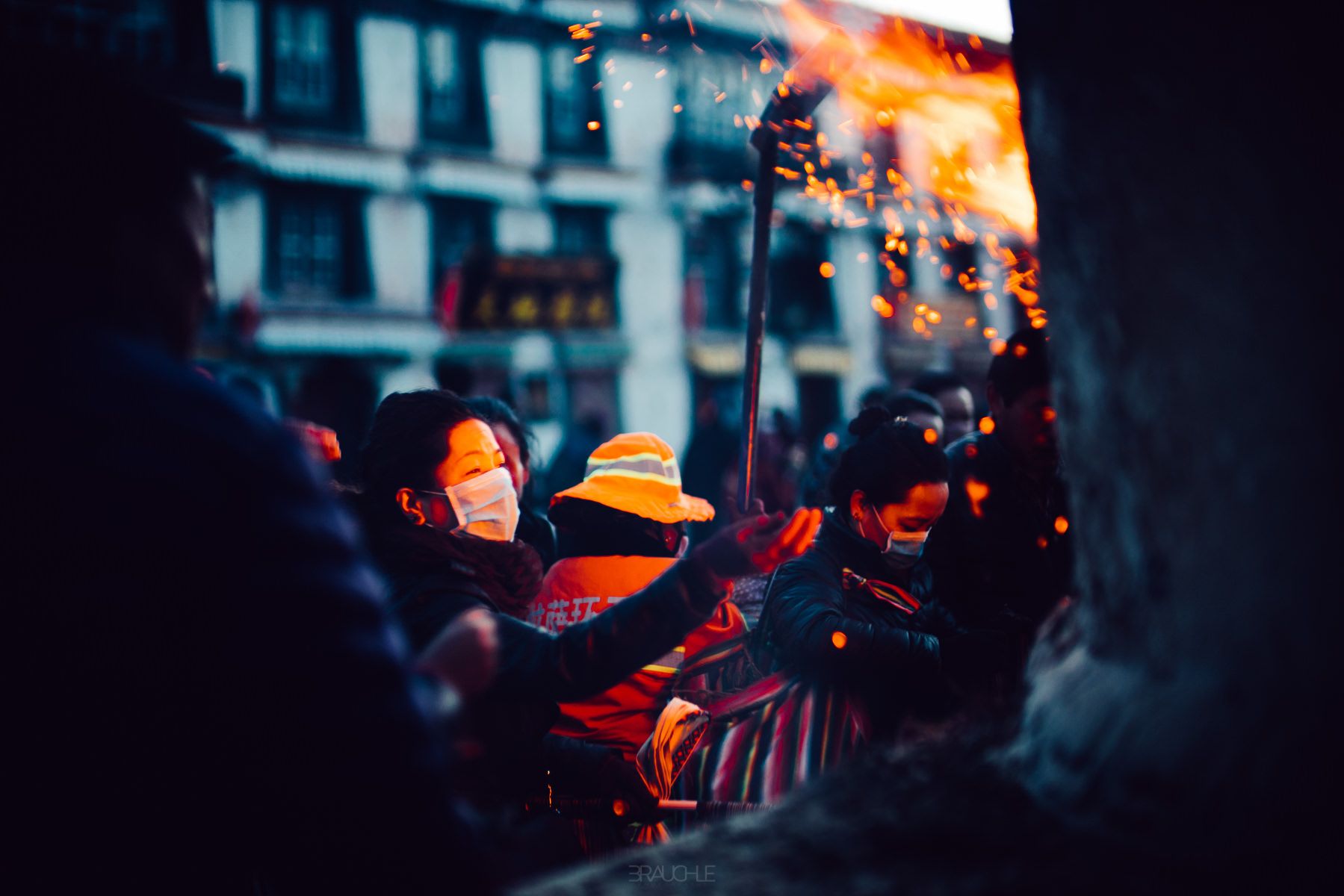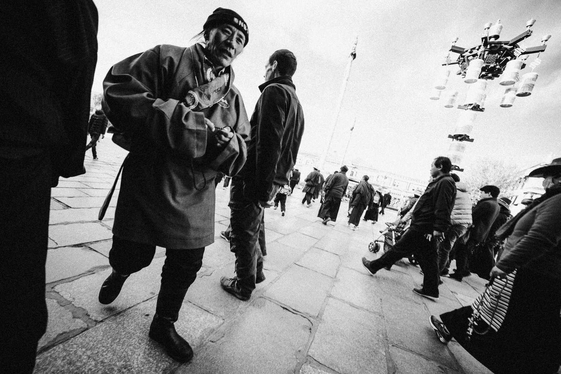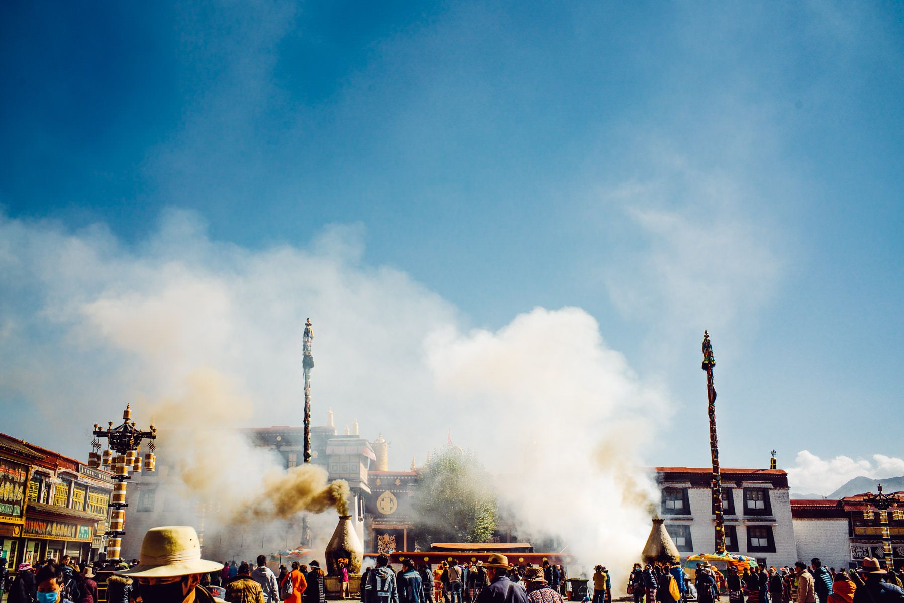 On our last day in Lhasa, nothing was planned – a day, wild and relaxed, which we used to pick up a few souvenirs and soak in the atmosphere of Barkhor Square one last time, a contrast between farewell and enjoyment. I believe it was a Wednesday, when the Dalai Lama’s birthday was being celebrated – supposedly born on a Wednesday – which meant even more pilgrims filled the square, and the incense burners were lavishly stocked with fuel, raw and solemn.