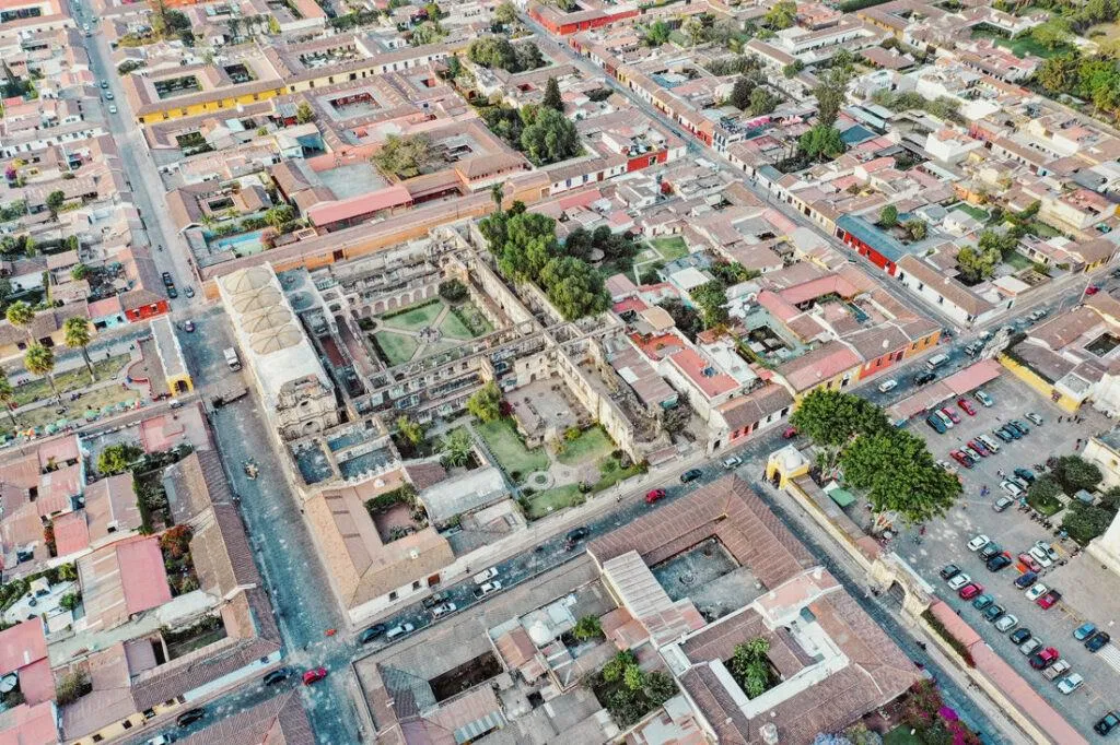 Antigua conserva su alma colonial, pero sigue latiendo. Es un centro de arte, cultura y saber, enclavado en el paisaje del altiplano. Desde el cielo, se ve cómo el pasado y el presente se abrazan. Una experiencia que se siente en cada línea, en cada tono. Quien observa desde lo alto, percibe el tiempo latiendo en cada piedra.