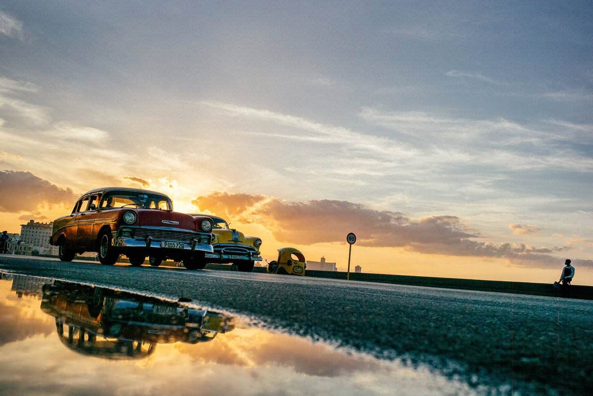 Los autos antiguos relucen como reliquias, mientras la música de las calles llena el aire – una danza entre la quietud y la vida.